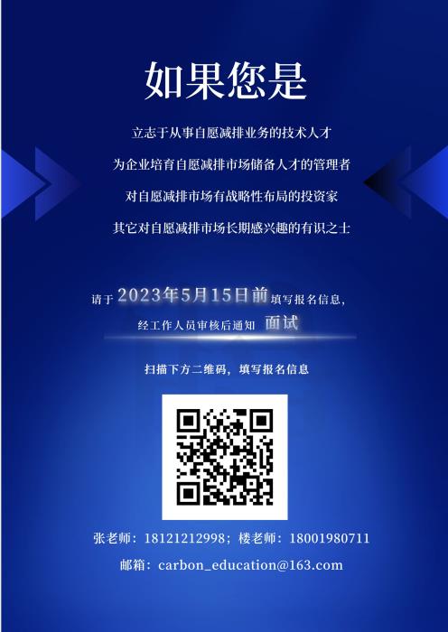 入學要求:對自愿減排業務感興趣,對碳市場具備最基本的認識,熟悉辦公軟件,寫作水平佳,具備一定的英語閱讀能力和財務分析能力,研究生學歷優先,擁有碳市場相關從業經驗者優先。
